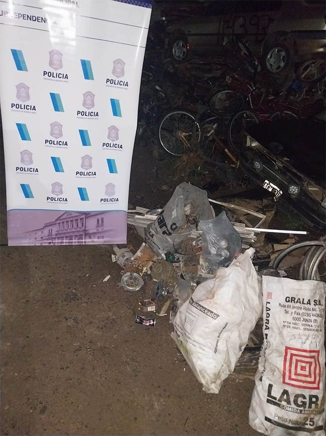La Policía Seguridad Comunal de General Villegas, comunicó, mediante un parte de prensa lo actuado durante el primer fin de semana del mes de julio, en el que se refirió, entre otros temas, al vinculado con las imágenes de la foto de portada del que explica que a raíz de investigaciones realizadas en relación a la sustracción de motocicletas en la ciudad cabecera, se logró dar con tres masculinos oriundos partido Merlo, provincia de Buenos Aires, quienes circulaban en una camioneta marca Ford F-100 modelo Duty, color bordo, quienes se hallaban realizando actividad compra de materiales ferrosos tipo chatarrería, metales varios entre los cuales se encontraban partes de moto vehículos. Masculinos trasladados a dependencia policial y notificados de recaudos legales.