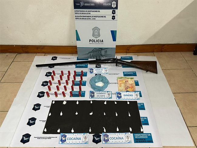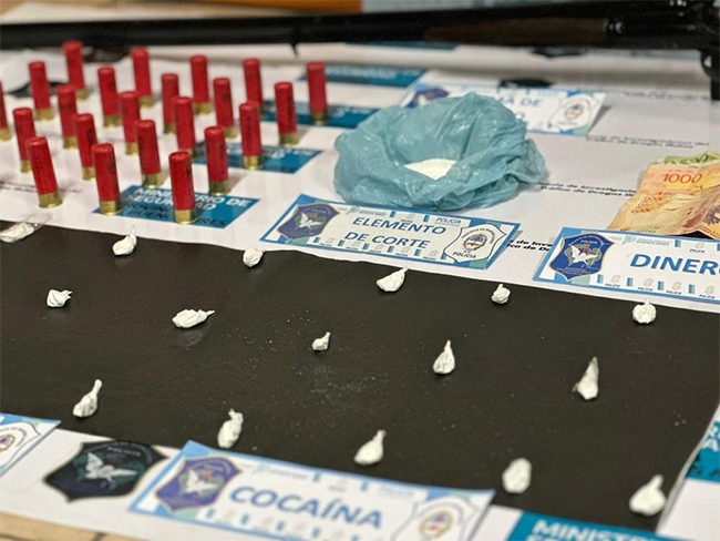 En los objetivos se hallaron clorhidrato de cocaína fraccionada lista para su comercialización; elemento de corte para la sustancia de estupefaciente; un arma de fuego con municiones; y dinero en efectivo”. Además, un sujeto mayor de edad fue aprehendido y alojado en la dependencia policial a la espera de su indagatoria en la sede fiscal.