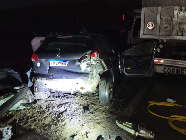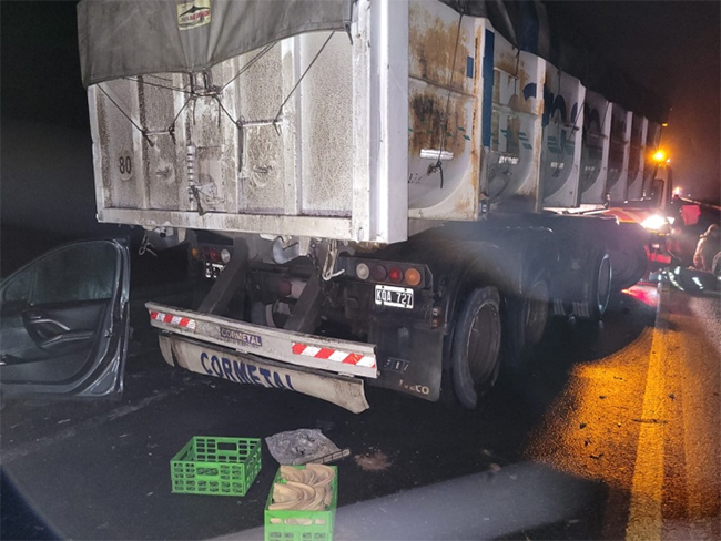 En el choque, ocurrido cerca de las 21.30 horas, entre el peaje y el puente de Saforcada, participaron un camión Tractor Fiat Tector 22, matrícula KQH084, con batea Cormetal patente KQA727, y un Peugeot 2008 patente AD174LN, conducido por Ernesto Arrizabalaga, de 42 años, quien era acompañado por Pamela Belen Goestchi, de 36 años, y dos menores Francina y Sofía, hijas del matrimonio, de 11 y 7 años (todos domiciliados en la localidad de Alberdi, partido de Leandro N. Alem).