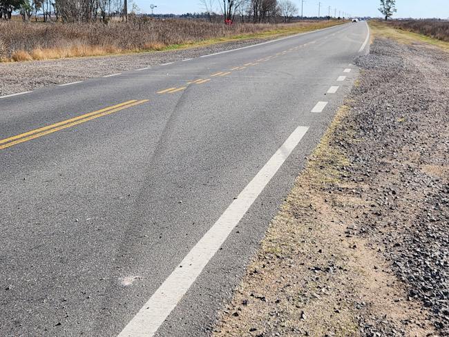 Las huellas de los neumáticos en el asfalto muestran la maniobra que realizó cruzándose de carril para luego volcar sobre la banquina y préstamo dando varios tumbos.