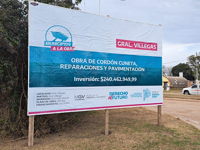Se trata de un proyecto que aborda uno de los principales accesos a la ciudad de General Villegas y su zona aledaña, dotándola de 5.300 metros lineales cordón cuneta, badenes de desagüe en toda la zona de obra y 9.000 metros cuadrados de pavimentación sobre la calle De María, consolidándose como un acceso de jerarquía.