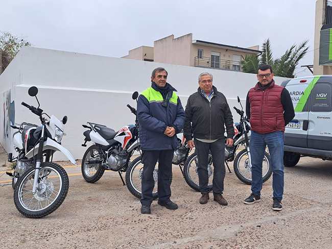 El Intendente Eduardo Campana recibió este jueves 4 motos Honda, equipos de bodycam, handies y cámaras 360° adquiridos por el Municipio para el personal de la Guardia Urbana Municipal dependiente de la Secretaría de Seguridad y Defensa Civil que resultan de gran importancia para mantener y regular la Seguridad Urbana de la ciudad.