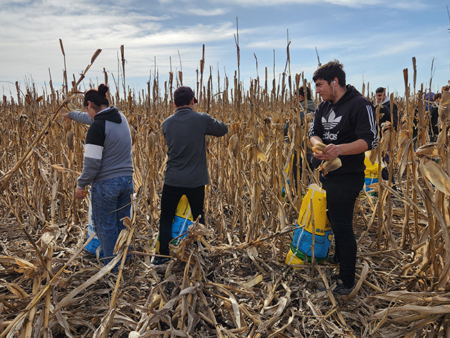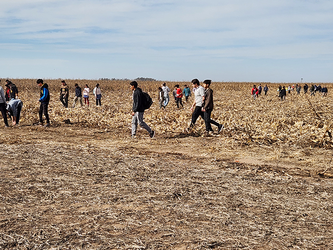 De la experiencia participaron unos 130 chicos de las escuelas Técnica y Especial que cosecharon a mano (simbólicamente) una hectárea de maíz donada por el establecimiento agropecuario que dispuso toda maquinaria necesaria.