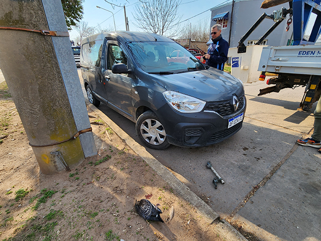 Una paloma que se posó sobre un seccionador, al electrocutarse produjo importantes daños en el equipo perteneciente a la empresa Eden y en un utilitario que se encontraba estacionado debajo del transformador ubicado frente al hospital municipal.