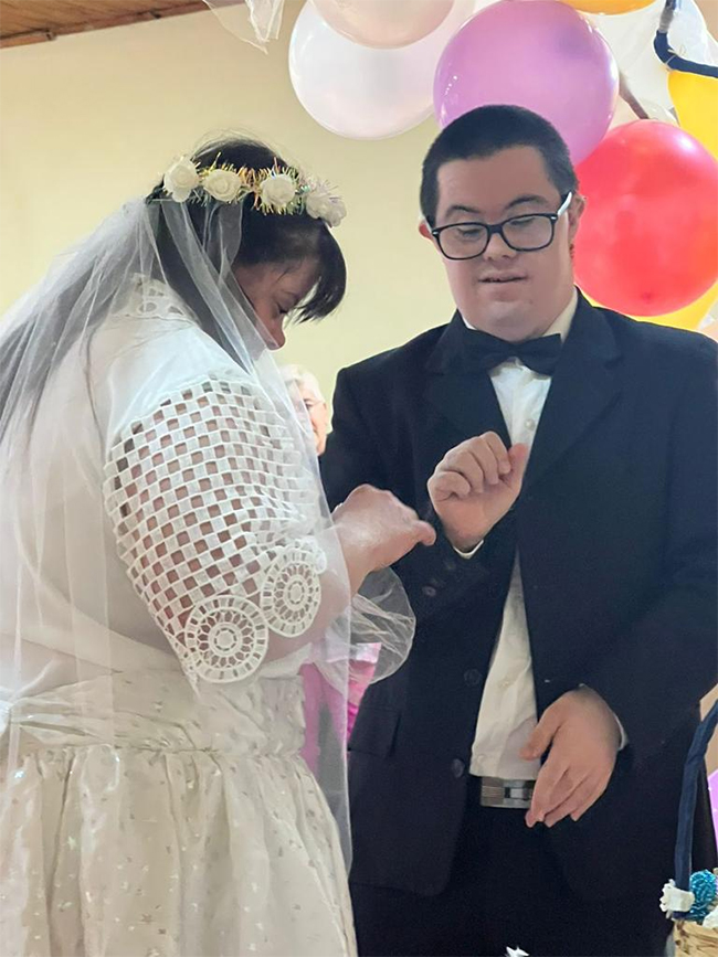 Belén Leiva y Francisco Grosso, tienen 30 y 33 años respectivamente, ambas personas tienen Síndrome de Down, su amor que lleva unos años 10 años, desde que se conocieron en Aderid, selló una etapa al decidir contraer matrimonio.