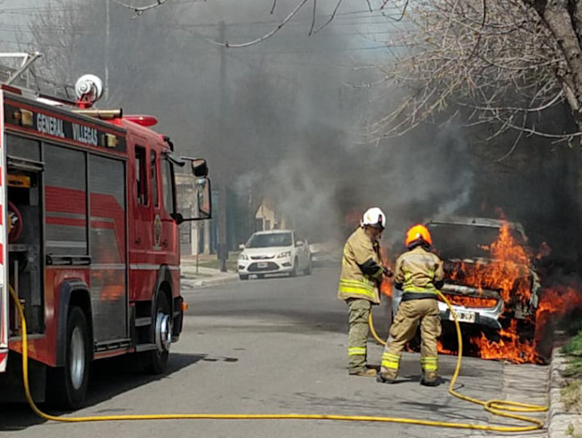 Este mediodía una Chevrolet S10 que se encontraba estacionada sobre la calle San Martín casi esquina Larrea fue seriamente afectada por el fuego.
