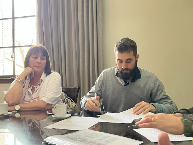 Estuvieron presentes el Secretario de Gobierno, Martín Recalde, el Director de Asuntos Legales, Mariano Maranta, y los representantes gremiales de UDEB Laura López, Edith Ochandorena, Graciano Córica y Miriam Santiago rubricando los documentos.