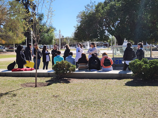 Esta mañana, como habíamos adelantados el fin de semana, los Acompañantes Terapéuticos que ejercen en la ciudad cabecera se concentraron en la Plaza Principal para hacer visible su situación producto de la demora en los pagos por parte de las obras sociales.