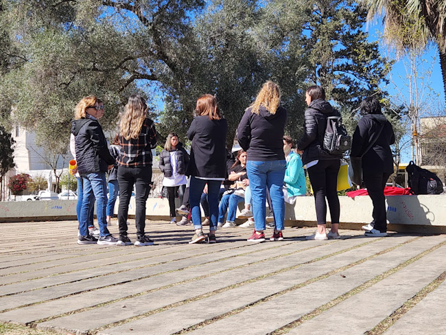 El punto de encuentro fue el Paseo de la Memoria, en el centro de la Plaza Principal donde realizan desde las 10:00 hs. una Asamblea analizando el delicado estado en que se encuentran como consecuencia del pago con demora de las obras sociales.