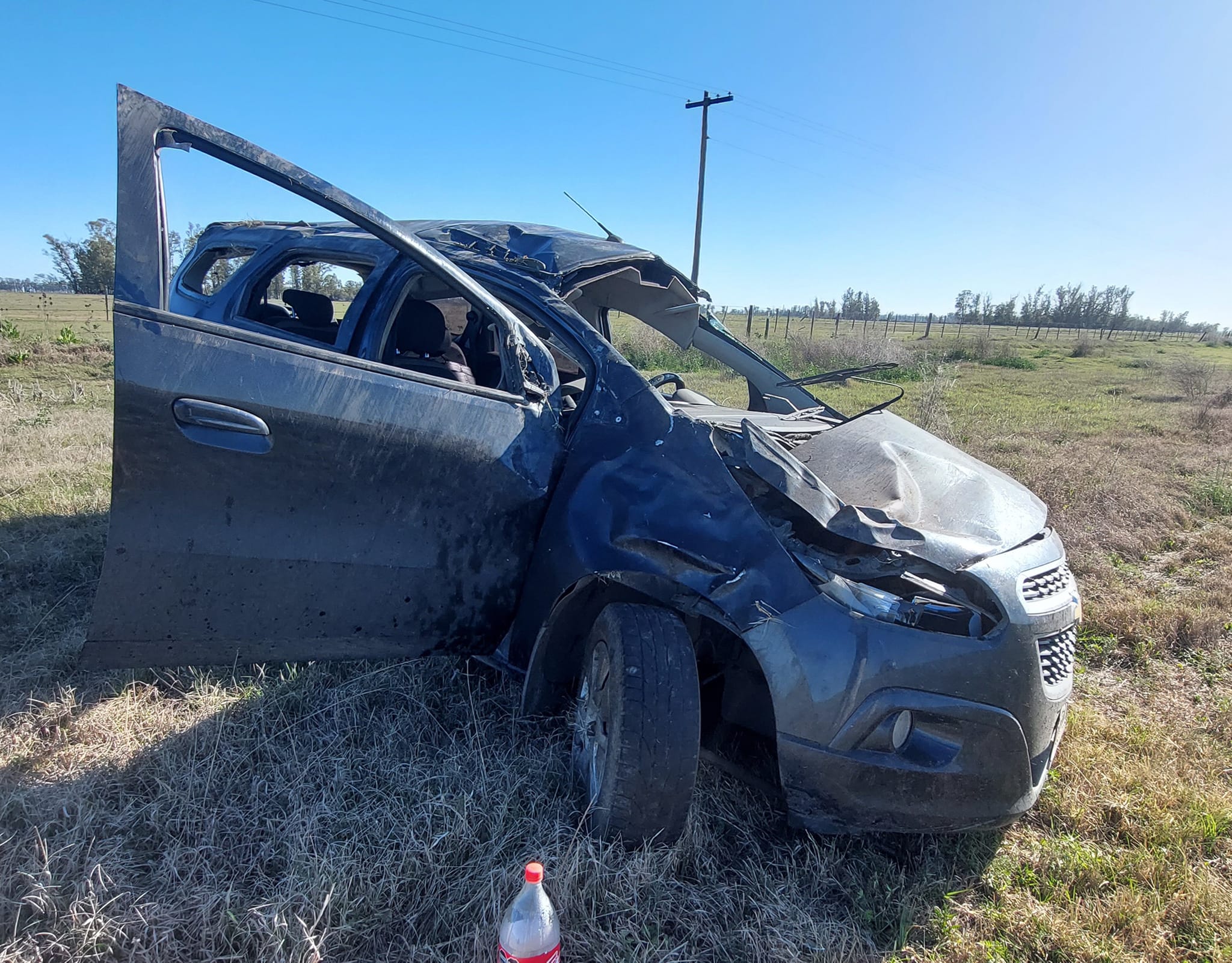 El conductor de una Spin se salvó de milagro al protagonizar un vuelco cerca de Ameghino