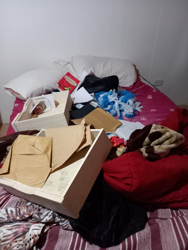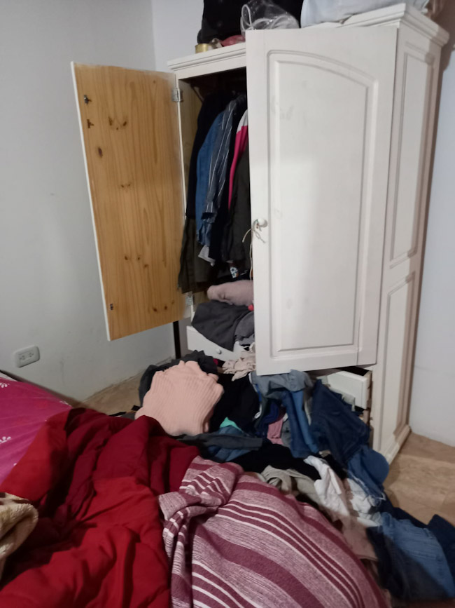 Al ingresar encontró todo revuelto, tal como se aprecia en las imágenes advirtiendo en principio la falta de un televisor, aunque no descartan que hayan sido más.elementos.
