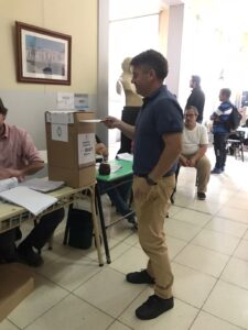 Fue el segundo en la mesa 7 en la escuela primaria N°1, donde estuvo como fiscal. Antes había votado el presidente de esa mesa.