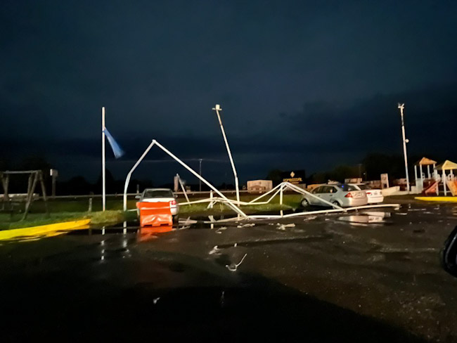 Un lector de Distrito Interior que transita por la Ruta 7 fue sorprendido por el fuerte viento que, tal como se aprecia, destrozó el estacionamiento de la estación de servicio Puma, que se encuentra junto a la parrilla La Carpa.