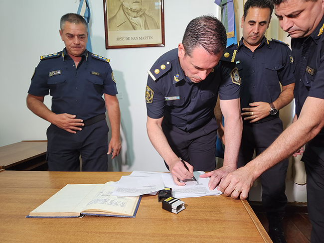 Esta tarde se procedió al relevo de autoridades policiales del distrito de General Villegas, realizándose el cambio del Jefe de Policía Comunal, Comisario Inspector Carlos Ortellado por el Comisario Gastón Orellano.