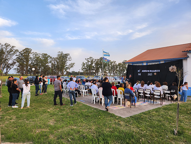 Rodeada de la inmensa llanura, con algunos lotes sembrados del otro lado del alambrado de siete hilos y un viento que fue compasivo durante el acto que tuvo lugar en el patio al que concurrieron autoridades, exalumnos, padres; todos ligados a la intensa historia de la escuelita de campo que reafirmó en la tarde del último viernes su identidad y sentido de pertenencia.