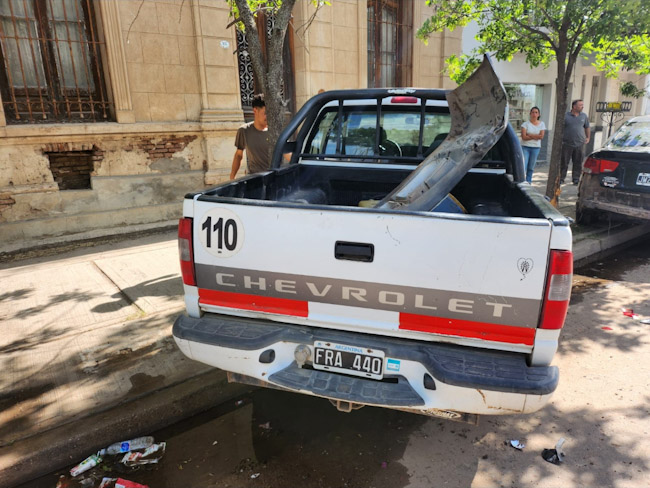 Como consecuencia del fuerte impacto el auto y la pick up quedaron sobre la vereda, tal como se los aprecia, sin lesionados.