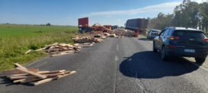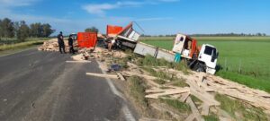Según información proporcionada por la fuerza, por causas a establecer colisionaron un camión Volkswagen con acoplado, vacío, conducido por un chofer mayor de edad, oriundo de la localidad de San Francisco Provincia de Santa Fe; y un camión Ford con acoplado cargado de maderas, oriundo de la localidad de Concordia Provincia de Entre Ríos. Ninguno de los choferes resultó con lesiones, pero la carga quedó sobre la ruta.