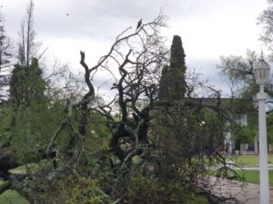 Con la intensa lluvia cayó un árbol de gran tamaño en la plaza de General Villegas