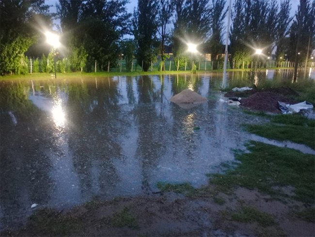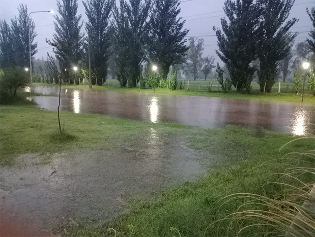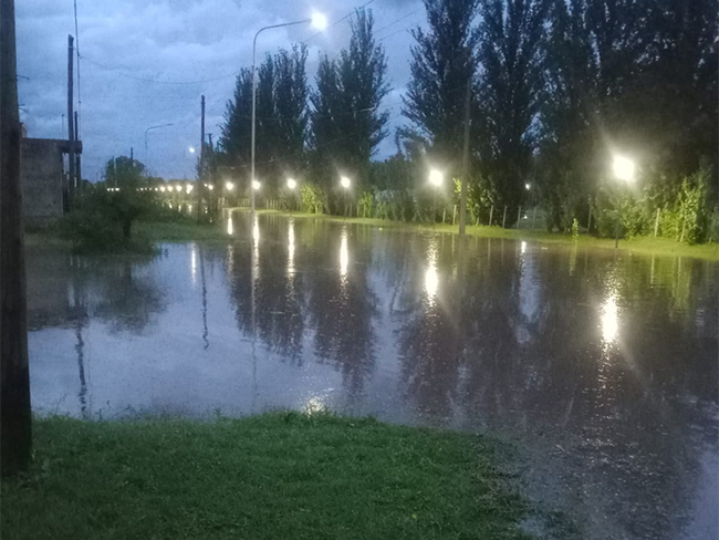 Alrededor de las 20:00 hs. la tormenta que amenazaba desde temprano avanzó sobre la ciudad descargando en apenas 20 minutos unos 30 milímetros que provocaron anegaciones en varias calles de la ciudad, en distintos puntos.