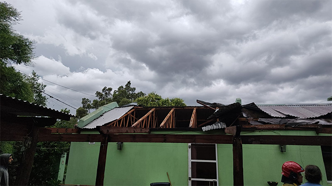 El fuerte viento que llegó acompañado de una intensa lluvia provocó en la localidad perteneciente al distrito de General Villegas al menos la voladura parcial de un techo en una vivienda que se encuentra en la sección quintas, en cercanías del acceso.