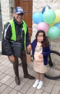 El magistrado llegó en bici con globos y sorprendió a la niña de seis años que esperaba con su familia en la puerta de Juzgado. Le entregó una carta para notificarle la sentencia de adopción en lenguaje claro, lo demás fueron abrazos y mucha emoción.
