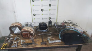 En esta maniobra se logró el secuestro de dos motos, una marca Mondial, la otra Zanella, ambas 110 cc, una, abandonada por el que se dio a la fuga; cables de diferentes diámetros y colores, bobinas de transformadores eléctricos, varias canillas metálicas, entre otros elementos.