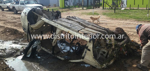 Esta mañana un vehículo, taller móvil, de una empresa de maquinarias agrícola, reventó una cubierta trasera al no poder evitar un pozo, provocándole una maniobra de zig zag y el posterior vuelco en la banquina.