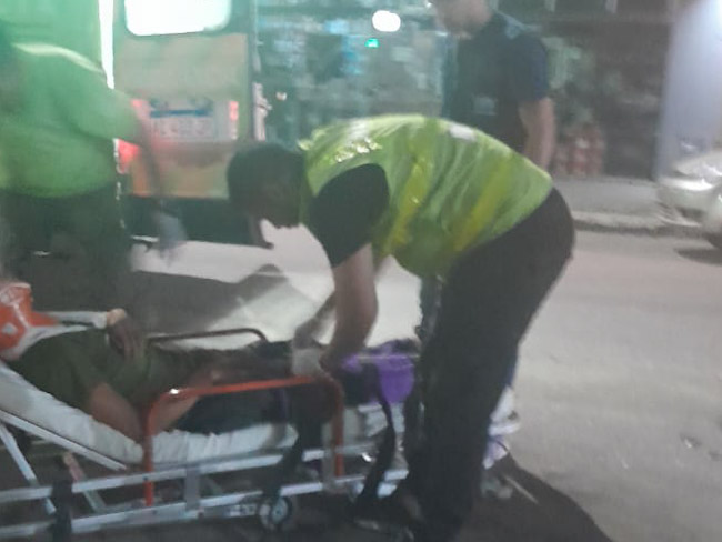 Producto del choque el motociclista cayó al piso sufriendo golpes, a simple vista ninguno de gravedad, siendo de todos modos trasladado por el SAME al hospital.
