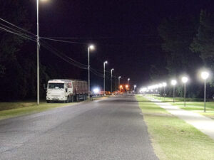 Esta noche un camión con acoplado que había subido al acceso Cebtenario con dirección a la Ruta 33 proveniente de la Avenida Chassaing Norte perdió parte de la carga.