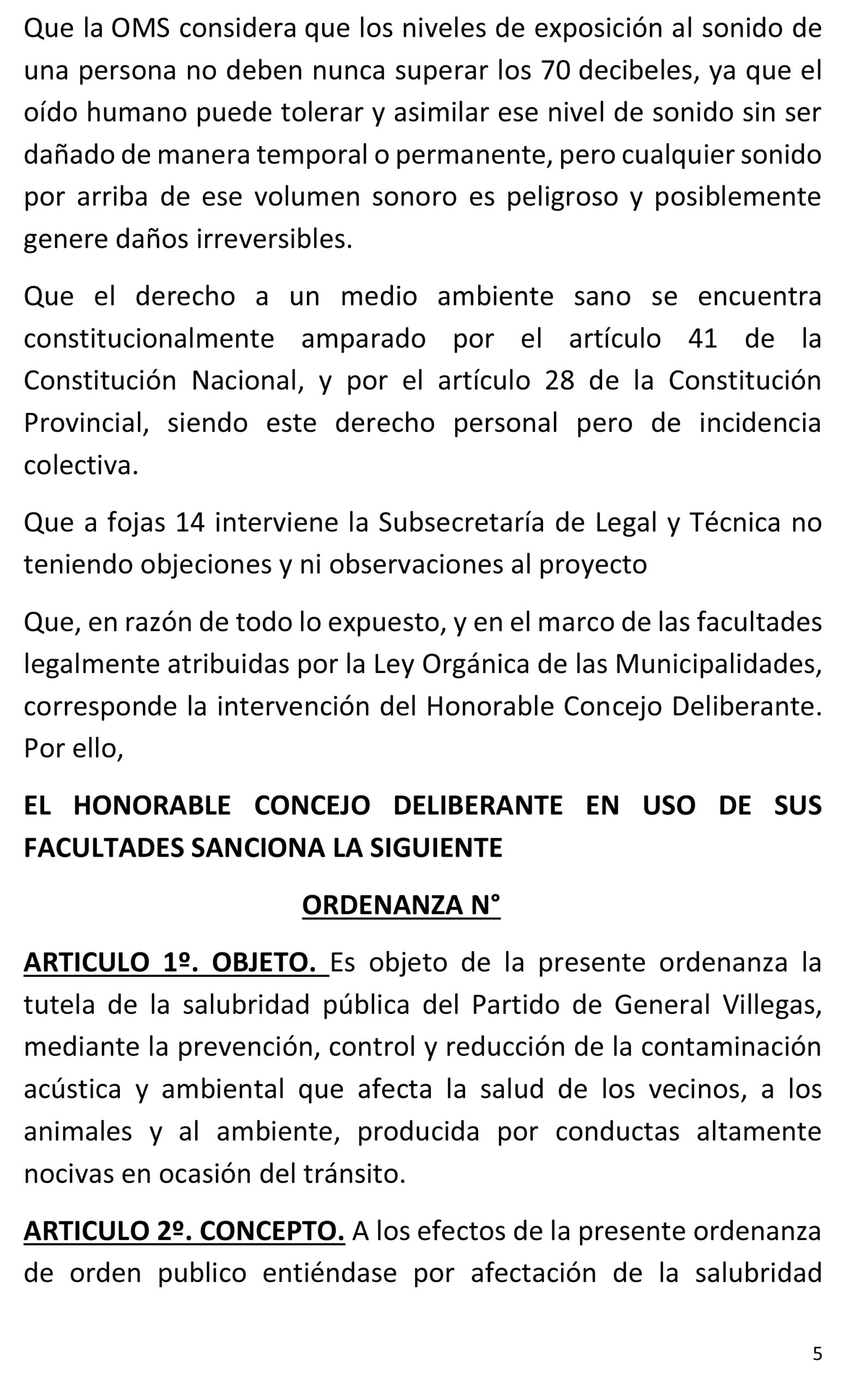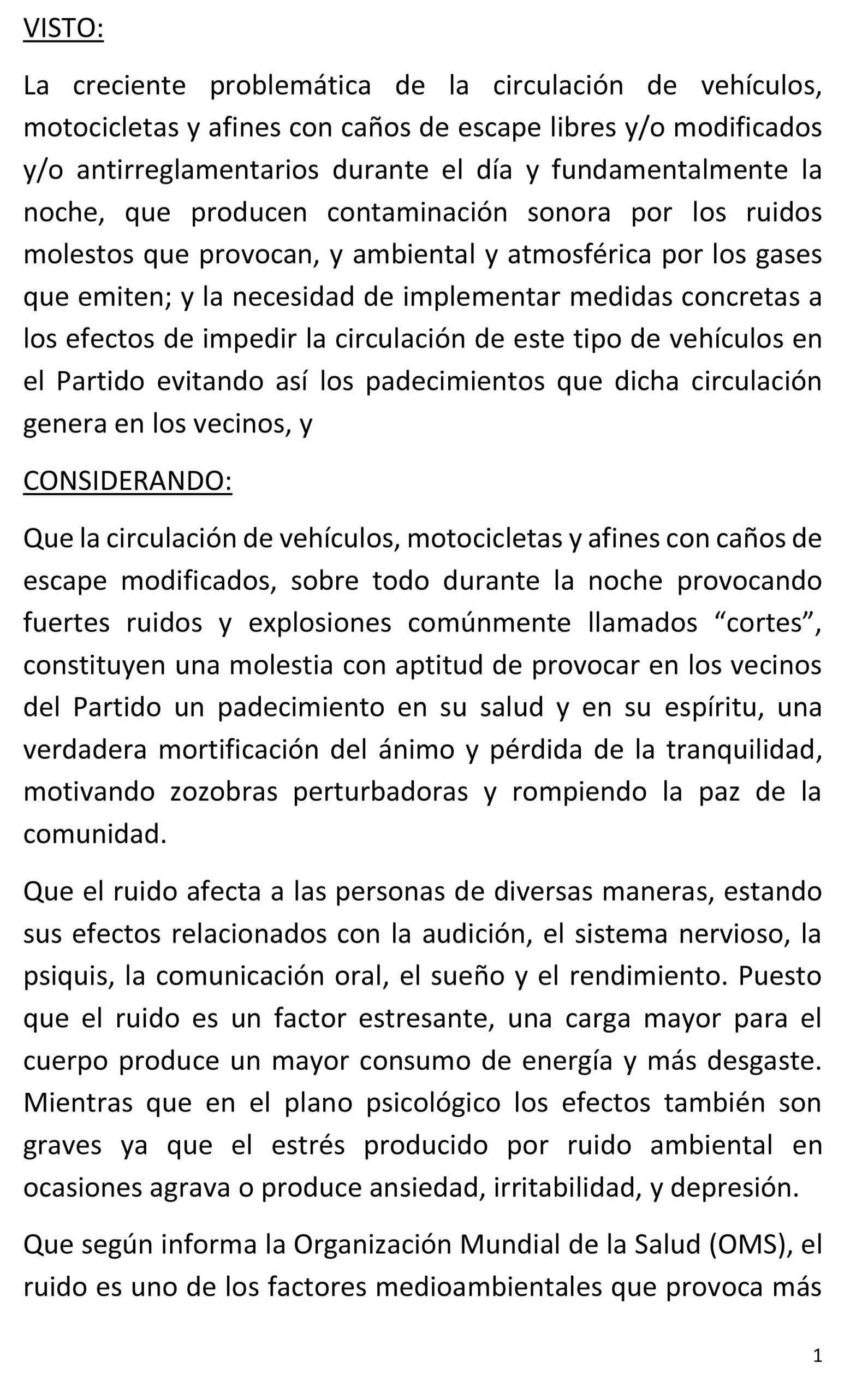A continuación, completa, la ordenanza sobre Problemática ruidos molestos y nocivos por motocicletas