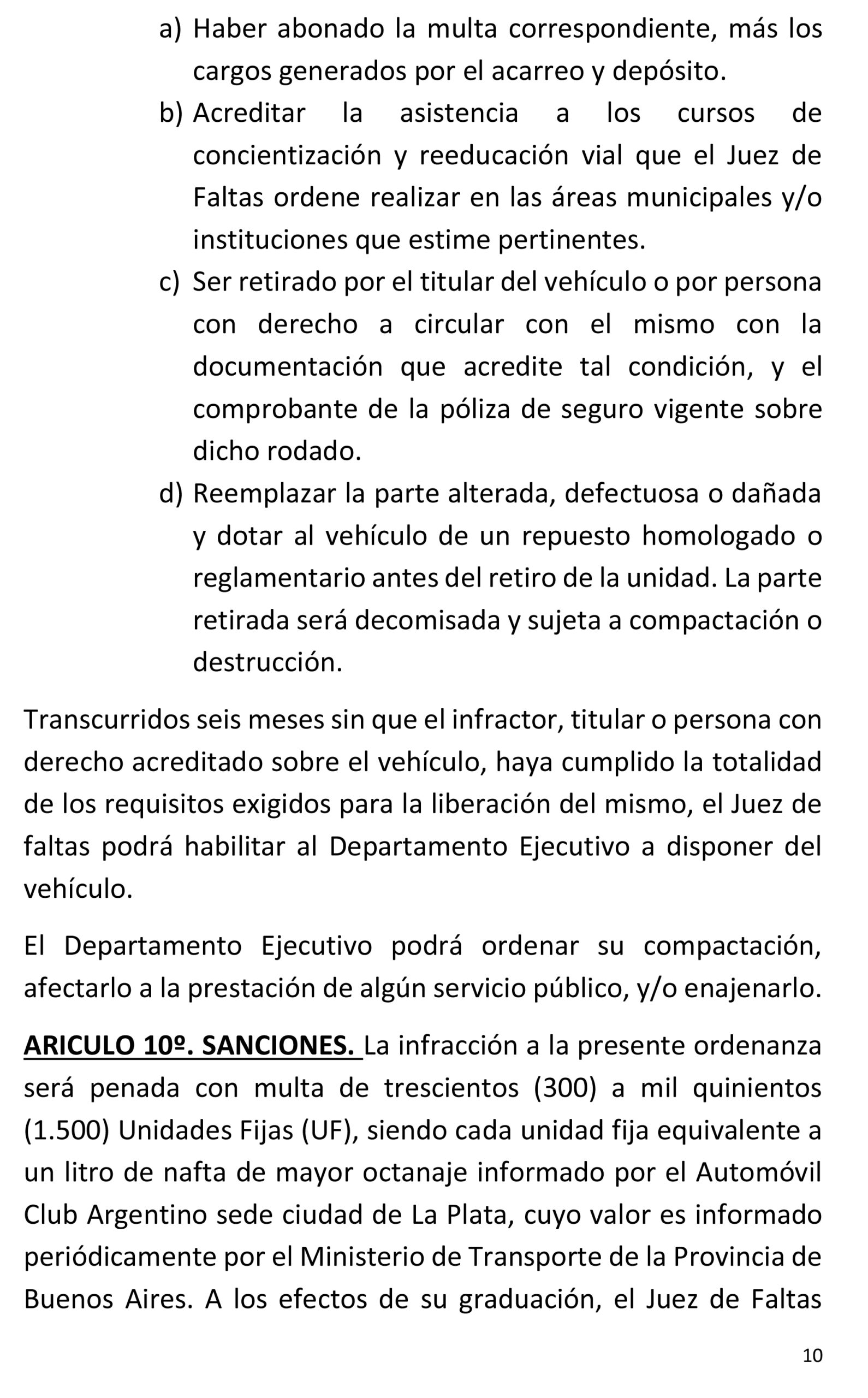 Si bien el allanamiento en casos puntuales es una de las consideraciones más salientes, esta Ley municipal prevé también sanciones en pesos muy elevadas que van hoy, ya que la unidad fijada para sancionar a los infractores es el valor del litro de la nafta con mayor octanaje; desde 300 a 1.500 unidades, lo que representaría hasta $ 1.500.000 aproximadamente.