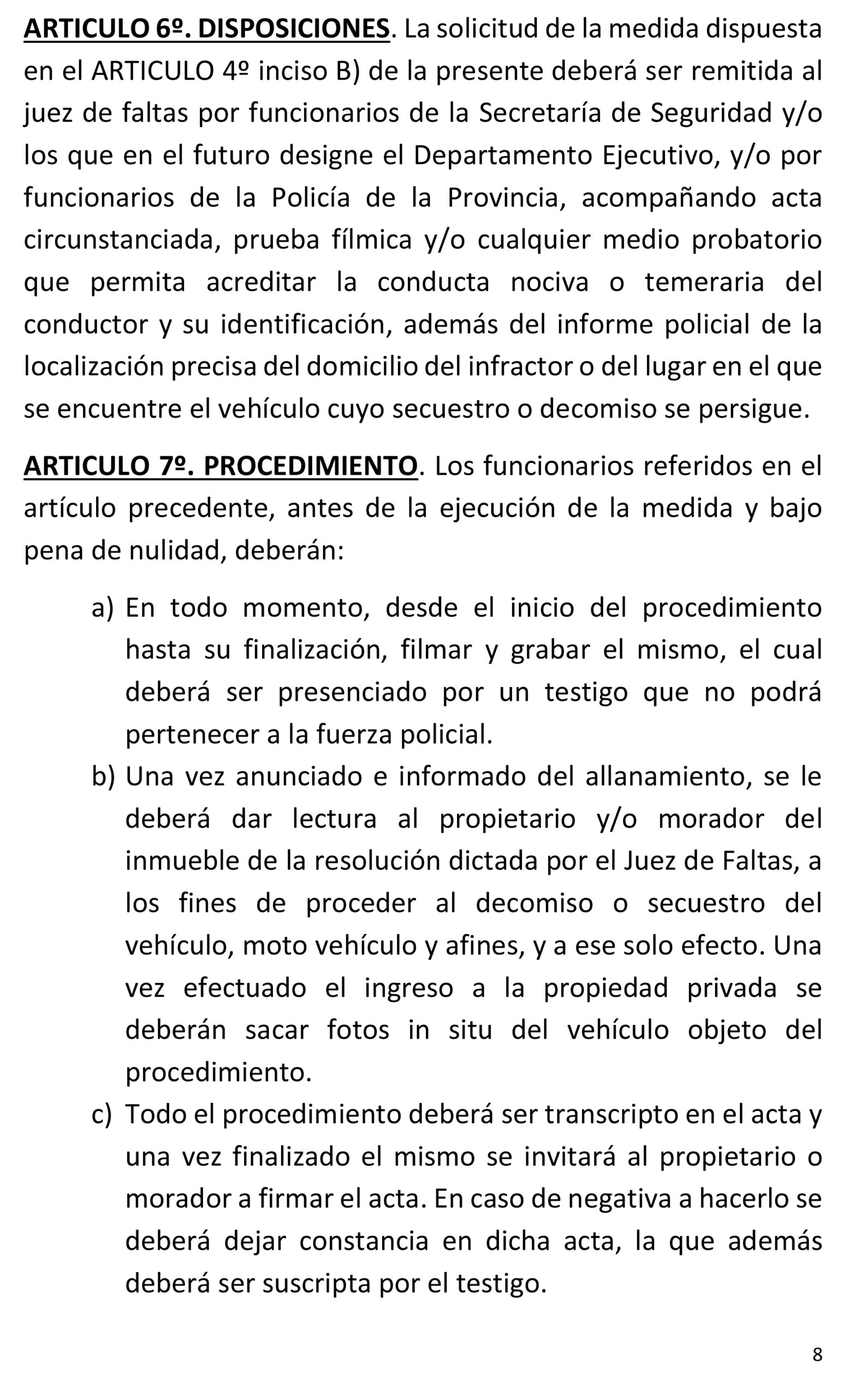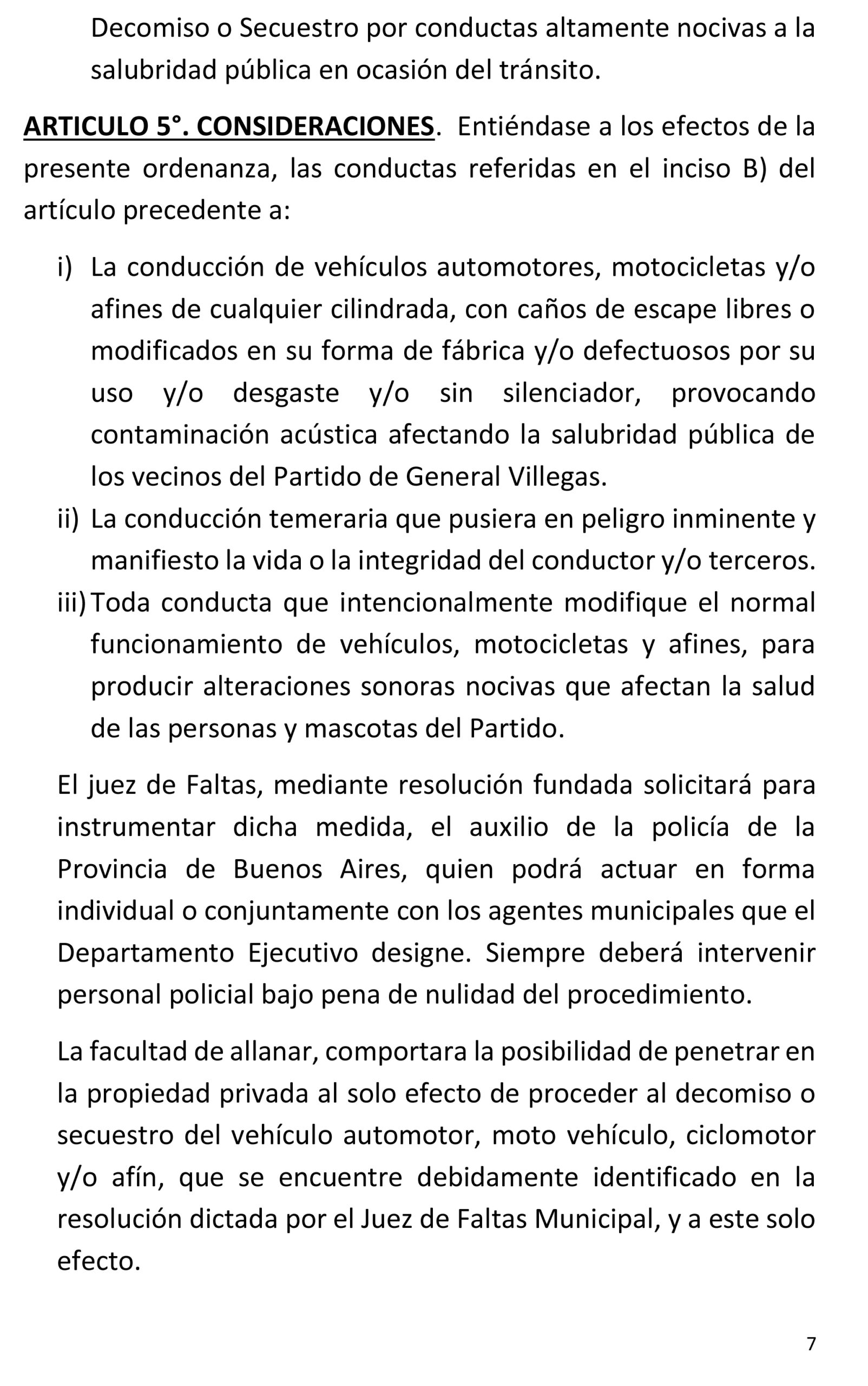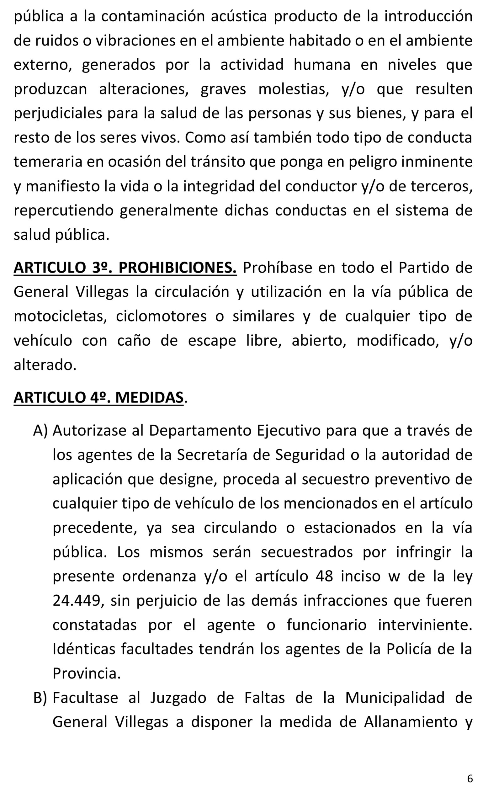 Completa y definitiva: la Ordenanza que establece allanamientos en caso de motos con escapes reformados en General Villegas