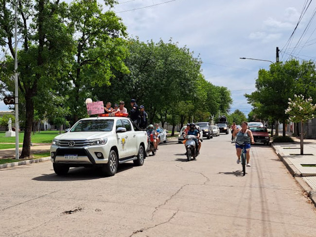Subida al móvil de los bomberos, recorrió las calles céntricas acompañada por una caravana que la siguió hasta su casa.