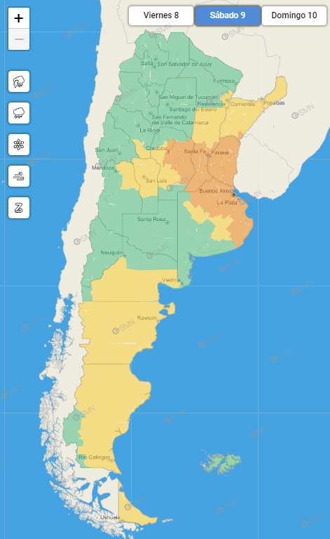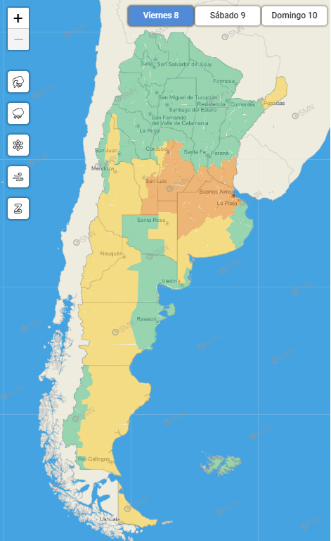 Para el día sábado, cambian las condiciones para el distrito de General Villegas que queda fuera del alerta, no así el resto de los distritos mencionados para los que el Alerta es para la mañana.