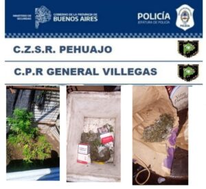 Asimismo se procedió a incautar en la urgencia, por parte de personal de la comisaría 3° de Rufino 1 planta símil cannabis, de 1,40 centímetros Y 200 gramos de marihuana compacta, por lo que se le dió intervención al Ministerio Publico de la Acusación de Rufino por corresponder a su jurisdicción.