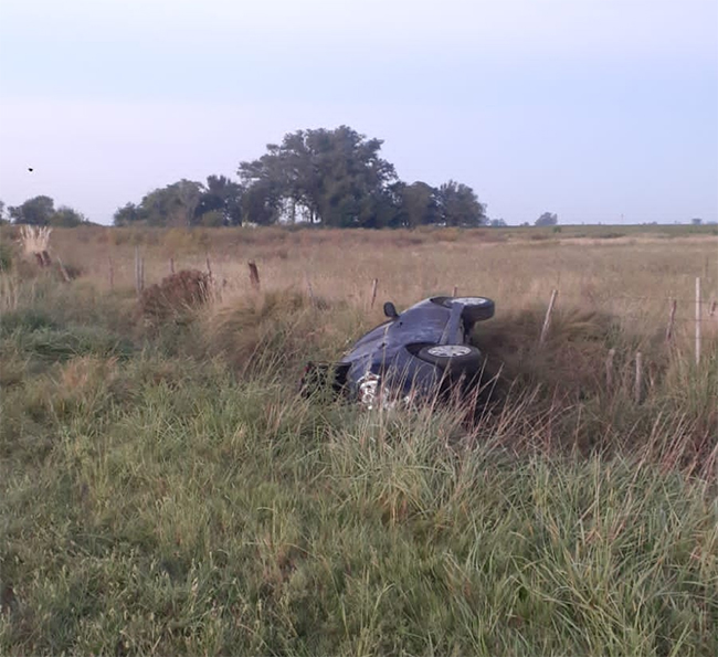 Por causas no establecidas, el vehículo se salió del camino, volcando hacia un lateral para quedar seriamente dañado tal como se aprecia en las imágenes.