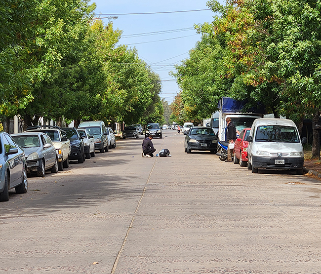 La mujer intentaba sobrepasar por la izquierda a un auto que circulaba por la calle Berutti, entre Rivadavia y Moreno a baja velocidad, cuando fue sorprendida por el rodado mal estacionado.