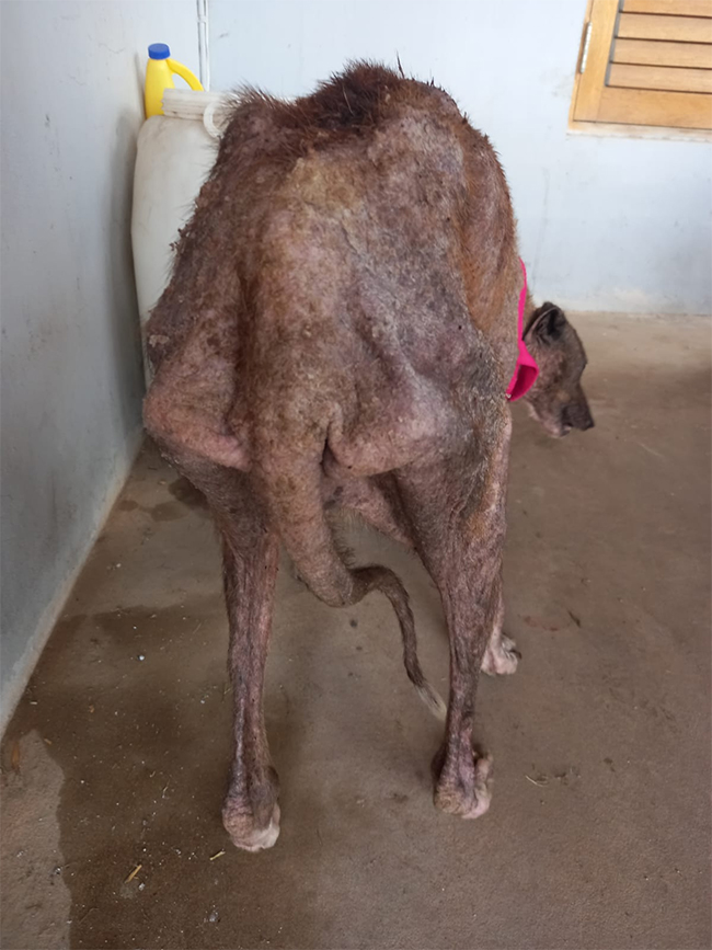 Hace unos días que la perra llegó a María Haug. Desde entonces el pedido de colaboración a la gente con la que cuenta en un grupo de Whatsapp giraron en torno a este animal; por su estado calamitoso y la necesidad de alimento y remedios, y luego para su traslado, porque así como hay gente cuya indiferencia los mata d ela manera más cruel, hay personas que actúan de manera inversamente proporcional.