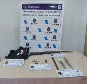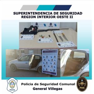 Ante la requisa que llevó adelante personal del Destacamento policial de Piedritas, con la colaboración del CPR de este distrito, ambos ocupantes poseían dos cuchillos tipo carnicero, con hoja de 30 cm, una chaira; una carabina calibre 22, marca Batan, 31 municiones calibre 22 sin detonar y 3 vainas servidas calibre 22.