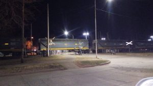Una lectora de Distrito Interior envió esta noche alrededor de las 23:30 hs. la imagen que acompaña esta publicación en la que se observa una formación ferroviaria de carga obstruyendo uno de los dos paso a nivel que neutralizó, probablemente en el marco de maniobras o un inconveniente.