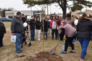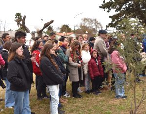 Poco después del mediodía, Mónica Spertino abrió el encuentro dando a conocer que lo que se habría de vivir en instantes, era el punto de partida para disponer este sector del pueblo para el encuentro y la celebración de la vida. La citada funcionaria se refirió al valor de los signos y en este caso, del árbol a plantarse y de los globos a soltarse. “Plantar un árbol es una manera de dar vida y construir futuro. Nos conectan con otros y a su vez unen pasado y futuro”, expresó. En cuanto a la suelta de globos señaló que “cada globo representa a una persona querida y se eleva hacia el cielo llevando consigo nuestros pensamientos, amor y recuerdo”.