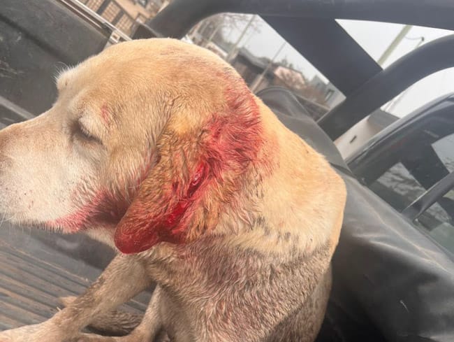El perro atacado fue llevado junto a su dueña en un vehículo de un vecino que se ofreció al ver la situación para que se atendido dado que resultó herido.