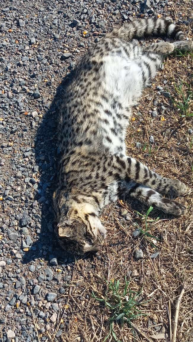 Un lector de Distrito Interior halló esta mañana a este ejemplar de gato montes o cachorro de puma muerto al costado de la Ruta 33, lo que llamó su atencion por lo poco común de estos avistamientos.