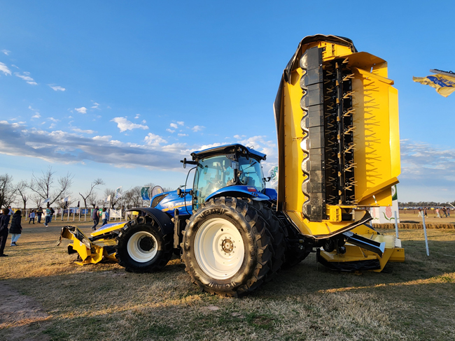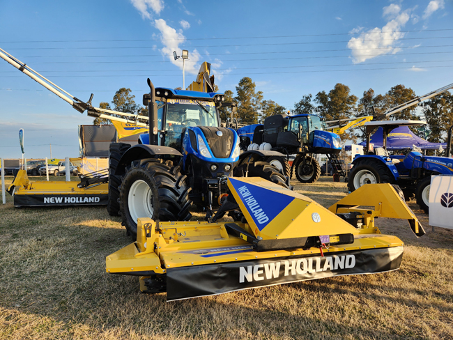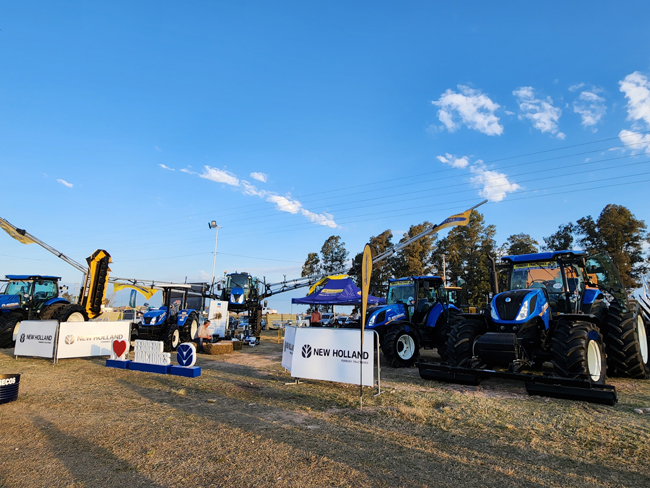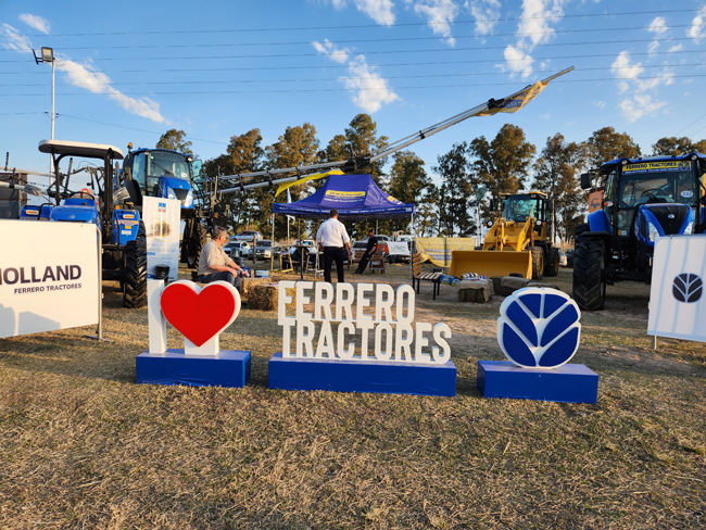 El el stand de Ferrero Tractores, agente oficial New Holland, se puede ver en el parabrisas de un tractor un cartel simple, con pocas letras y una inscripción contundente: «COMPRÓ QUIROGA, pagó de contado».