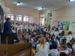 En esta oportunidad, a partir de la propuesta de la Escuela N° 3 «Salomé Ureña de Henríquez», compartió momentos con alumnos y docentes de las primarias N° 2, 3, 17, IMI, CIIE y Escuelas Rurales del Partido.