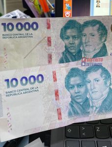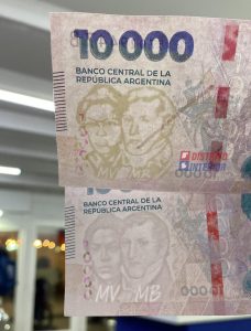 En un local comercial ubicado en pleno centro se encuentra el billete apócrifo de $ 10.000 pegado en el mostrador, con la inscripción «FALSO», en clara advertencia que circulan este tipo de billetes, el de mayor denominación en circulación, hasta que sean incorporados los de $ 20.000.