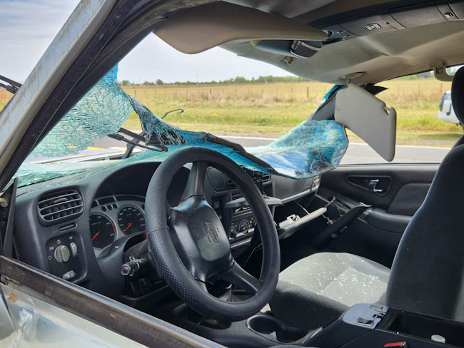 Desde entonces, casi una semana después, el monovolumen permanece estacionado sobre la banquina mano hacia General Villegas, en sentido contrario, con dos conos como señalización.