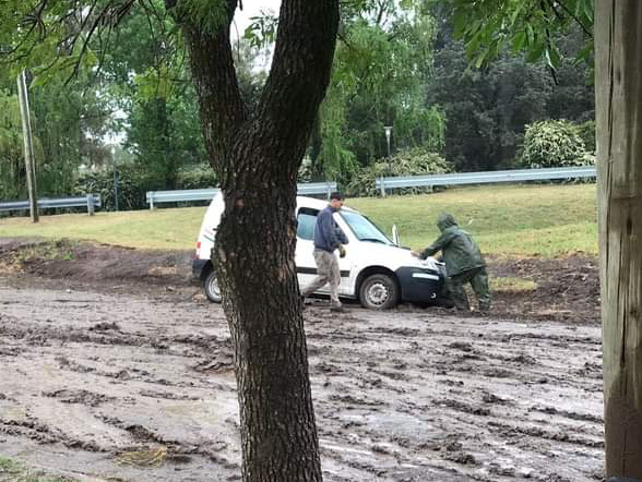 Esta tarde un utilitario que se deslizó por la calle luego de las lluvias cayó a la cuneta sin poder salir por sus propios medios.