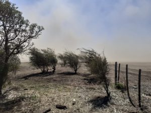 Durante la mañana del sábado inició un incendio en un campo cercano al camino del Meridiano, territorio pampeano, que dado el intenso viento cruzó la Ruta 2 de la vecina provincia, alcanzando campos de Buenos Aires, pertenecientes a Villa Sauze, Partido de General Villegas.