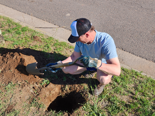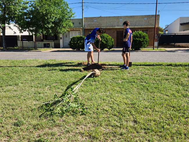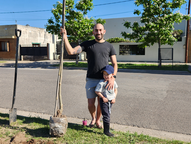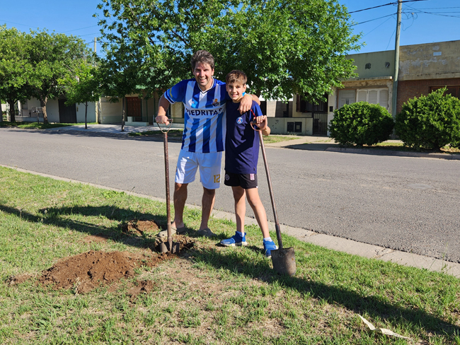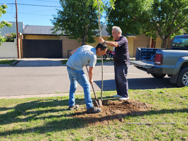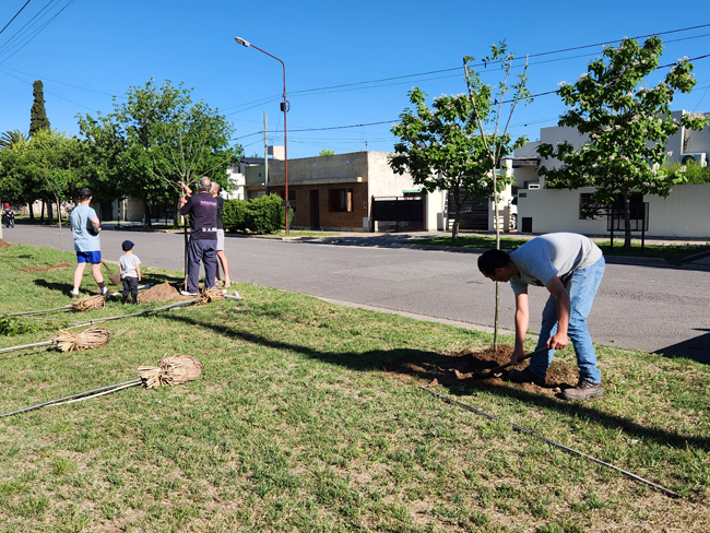 Este sábado por la tarde unas diez personas, en algunos casos padres con sus pequeños hijos, que serán quienes en realidad disfrutarán de las sombras de esos árboles en el futuro, comenzaron a materializar una idea que surgió hace un tiempo y encontró eco en el área Medio Ambiente de la Municipalidad que proveyó los ejemplares en este caso.